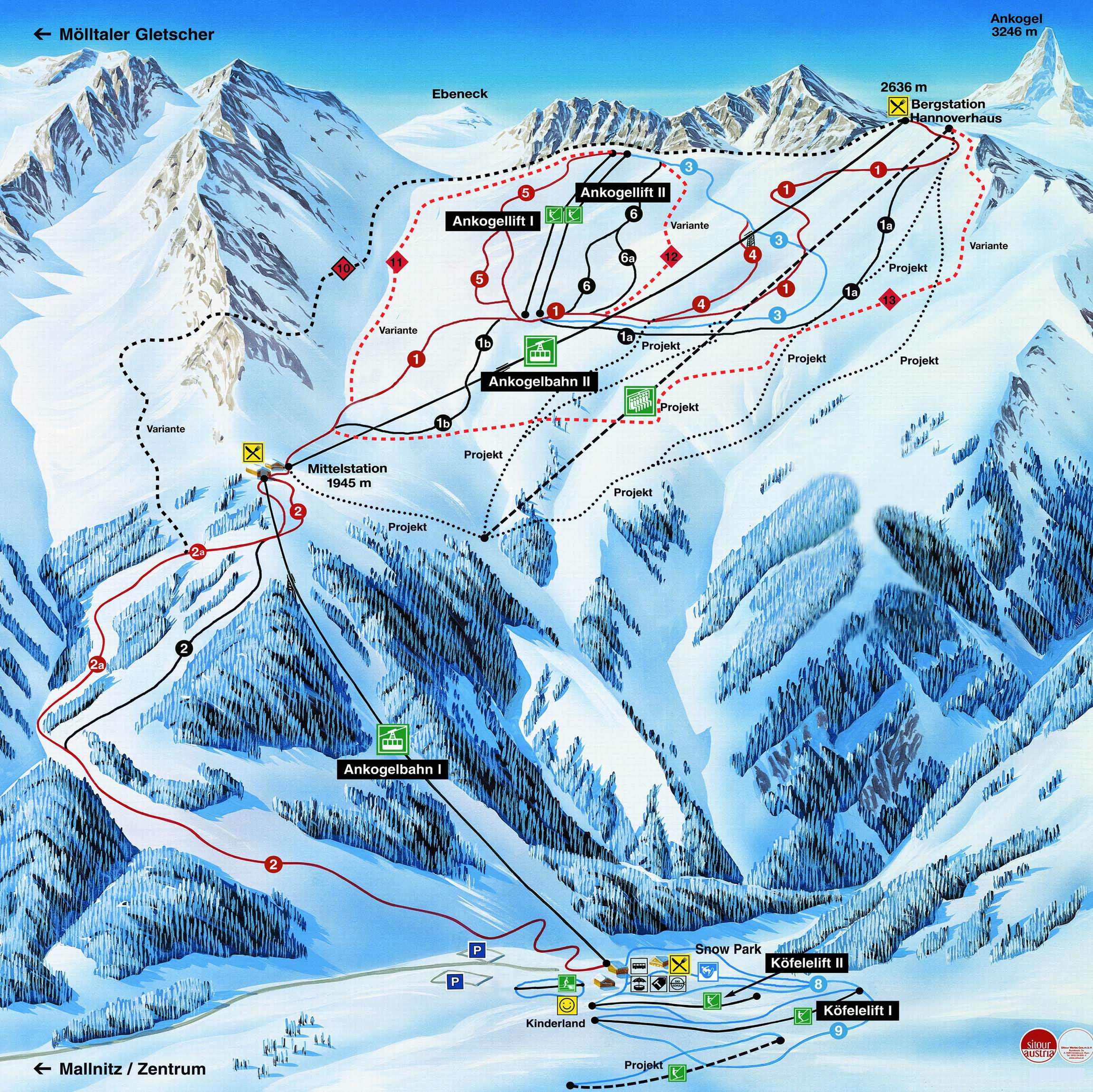 Mallnitz, a barátságos üdülőfalu szélén található Ankogel síterepe, ahol 12,8 kilométernyi sípálya várja a síelni vágyókat. A Karintia és Salzburger Land tartományok határán elhelyezkedő Ankogel-Mallnitz kedvező fekvése és magassága miatt hóbiztos sípályarendszer. A völgyből, 1.287 méteres magasságból kabinos lifttel (Ankogelbahn) 2 lépcsőben mehetünk fel a 2.600 méter magas hegycsúcsra, ahol gyönyörködhetünk Ankogel-Mallnitz csodálatos panorámájában. A kezdők a völgyben sajátíthatják el a síelés alapjait, a haladók és a profik pedig széles, hosszú, piros és fekete sípályákon tehetik meg az utat lefelé Ankogel-Mallnitz lejtőin.