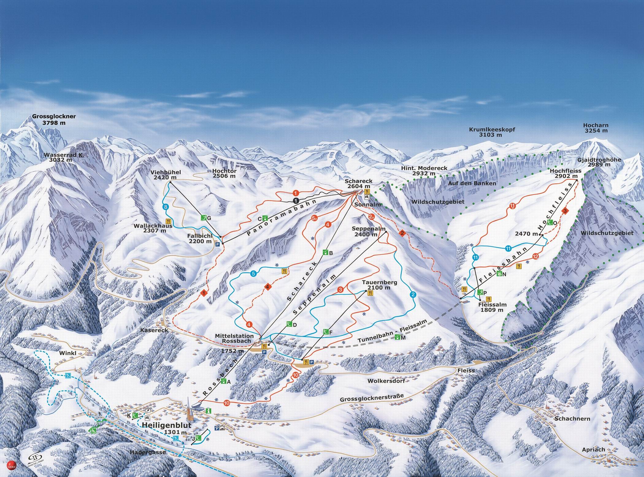 Az idilli hegyi falu, Heiligenblut, a Hohe Tauern Nemzeti Park szívében, a Großglockner, Ausztria legmagasabb hegyének, a lábánál található. 55 kilométer jó minőségű, jellemzően hosszú sípálya, 12 lift és számtalan túra lehetőség várja az ide látogatókat. Heiligenblut faluból kabinos lifttel (Rossbach, Schareck) érhető el a Schareck-csúcs, ahonnan különböző nehézségű sípályákon jutunk vissza a völgybe vagy a Hochfleiss-re. A freeride kedvelői a 25 hektáros Freeride Arena Grossglockner-en hódolhatnak szenvedélyüknek. A kiváló mikroklímának, és a magashegyi környezetnek köszönhetően Heiligenblut rendkívül hóbiztos síterep.