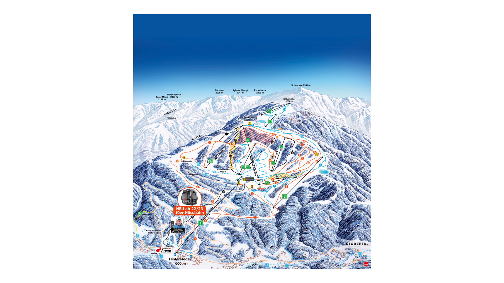 Hinterstoder síterepe Ausztria szívében található 600-2.000 méter magasságban. A jól karbantartott 40 kilométer sípálya kezdő és gyakorlott síelőknek is ajánlott. A sípályarendszerbe Hinterstoder településről induló kabinos Hössbahn felvonóval csatlakozhatunk be. Innen akár lecsúszhatunk a pálya aljára is. Az 1.858 méter magas Turracher Höss csúcsra a két- és hatszemélyes ülős felvonókkal juthatunk fel. A hegy legmagasabb pontját, a 2.000 méter magas Schafkogelt húzós felvonókkal érhetjük el. A változatos síterepen többségében piros és kék pályákon síelhetünk. A síterepen világkupa versenyek is rendszeresen megrendezésre kerülnek, a bátrabb síelők a FIS pályán, valamint a Hannes Trinkl világkupa sípályán is lecsúszhatnak. A kisgyermekek a Sunny Kids Parkban tanulhatnak, a snowboardosok a Hinterstoder Funparkban különböző akadályokon mérettethetik meg magukat. Nem csak a síelés kedvelőinek jó választás Hinterstoder síterepe, hiszen az 1 kilométer hosszú, 200 méter szintkülönbséget megtevő szánkópálya minden éjjel 23 óráig kivilágítva várja a felnőtteket és gyermekeket egyaránt.