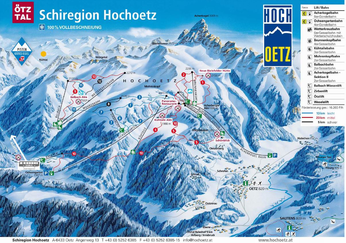 Hochötz sípályarendszerén 820-2.200 méter magasságban 34 kilométer sípálya és modern síliftek várják a téli sportok kedvelőit. Hochötz sípályarendszerét Ötzből az Acherkogelbahn vagy Ochsengartenből induló Ochsengartenbahn kabinos felvonóval lehet megközelíteni. A síterep legmagasabb pontjához a négyüléses Brunnenkopf felvonóval juthatunk, mely alatt piros jelzésű sípálya halad lefelé. A síterep kezdő és haladó síelők számára is ajánlott. A sípályák 100%-át hóágyúzzák, így a síszezon akár áprilisig is eltarthat Hochötz síterületén. A síbérlet min. 2 naptól a szomszédos Kühtai síterepére is érvényes. Ötz településről ingyenes síbusz szállítja az utasokat a szomszédos sípályákhoz.