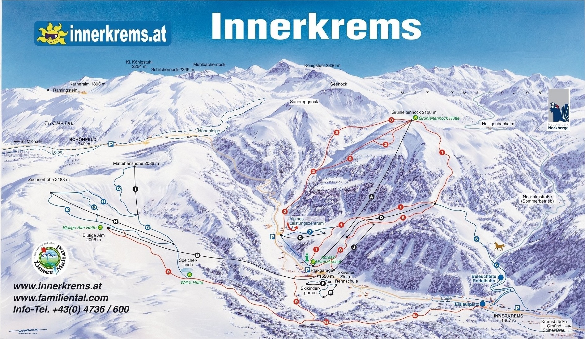 A Nockberge Nemzeti Parkba található a családias Innerkrems síterep, mely több nemzetközi és magyar síverseny helyszíne is. Kedvező fekvésének köszönhetően hóban gazdag és hóbiztos síterep. A központi parkolóból az Innerkrems-i völgy mindkét oldalára vezetnek liftek. Az északi oldal pályái könnyebbek, innét akár a 25 km-es Schönfeld-i pályarendszerre is átcsúszhatunk (visszafelé erdei pályán lehet csak visszacsúszni az Innerkrems-i oldalra!), míg a déli lejtők kicsivel keményebbek, jellemzően piros pályák.