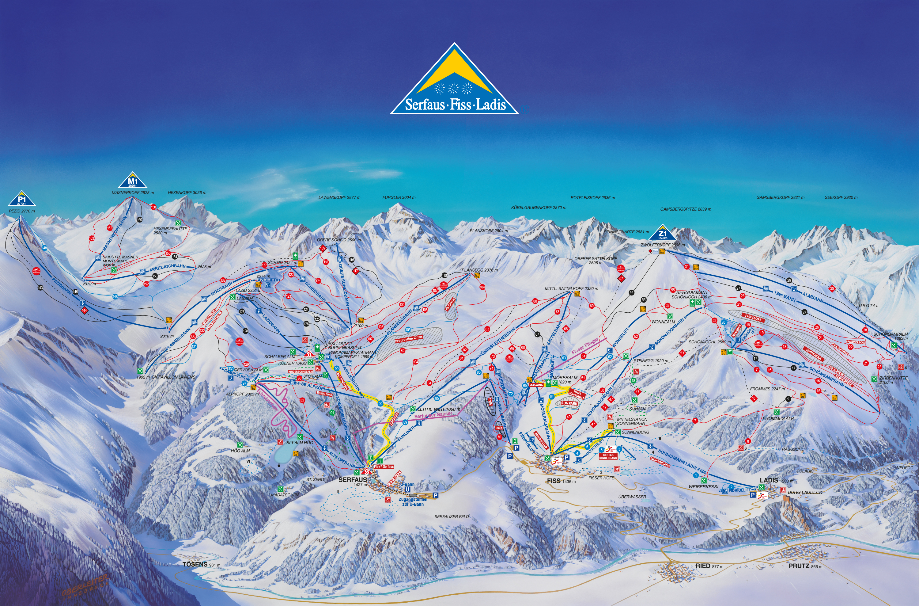Serfaus-Fiss-Ladis 1.200-2.800 méter magasságban fekvő síterepe 214 kilométer kiválóan kezelt sípályával várja azokat, akinek nem múlhat el a tél síelés vagy snowboardozás nélkül. A sípályarendszerbe Serfaus, Fiss és Ladis településekről csatlakozhatunk be, ahol többségében meredek, piros és fekete sípálya fogadja az ideérkezőket, de a 47 kilométer kék sípálya ideális választás a kezdő vagy középhaladó síelőknek. Serfaus-Fiss-Ladis síterepén a gyerkekenek is élmény a síelés, hiszen Serfauss hegyoldalán a Kinderschneealm és a Murmli-Park, Fiss mellett pedig a Berta's Kinderland játékos elemekkel és tanuló felvonókkal segíti a kisebbeket. A snowboardozás és freeride síelés hívei a Figlt & Cross Park Serfaus és a Snowpark Fiss-Ladis akadályain gyakorolhatnak. Serfaus-Fiss-Ladis síterepén éjszaka is élvezhetjük a síelés és a szánkózás minden pillanatát. Serfaus felett a Kopperdellalmon 4,5 kilométer szánkópálya és 3,5 kilométer sípálya, Fiss felett a Möseralmon 5 kilométer szánkópálya és 2,5 kilométer sípálya kivilágítva várja este is a téli sportok rajongóit. A síelés mellett különböző túrautakon felfedezhetjük a hófödte hegyoldalakat, Serfaus és Ladis völgyében korcsolyázhatunk, Fiss mellett sífutópályán haladhatunk végig.