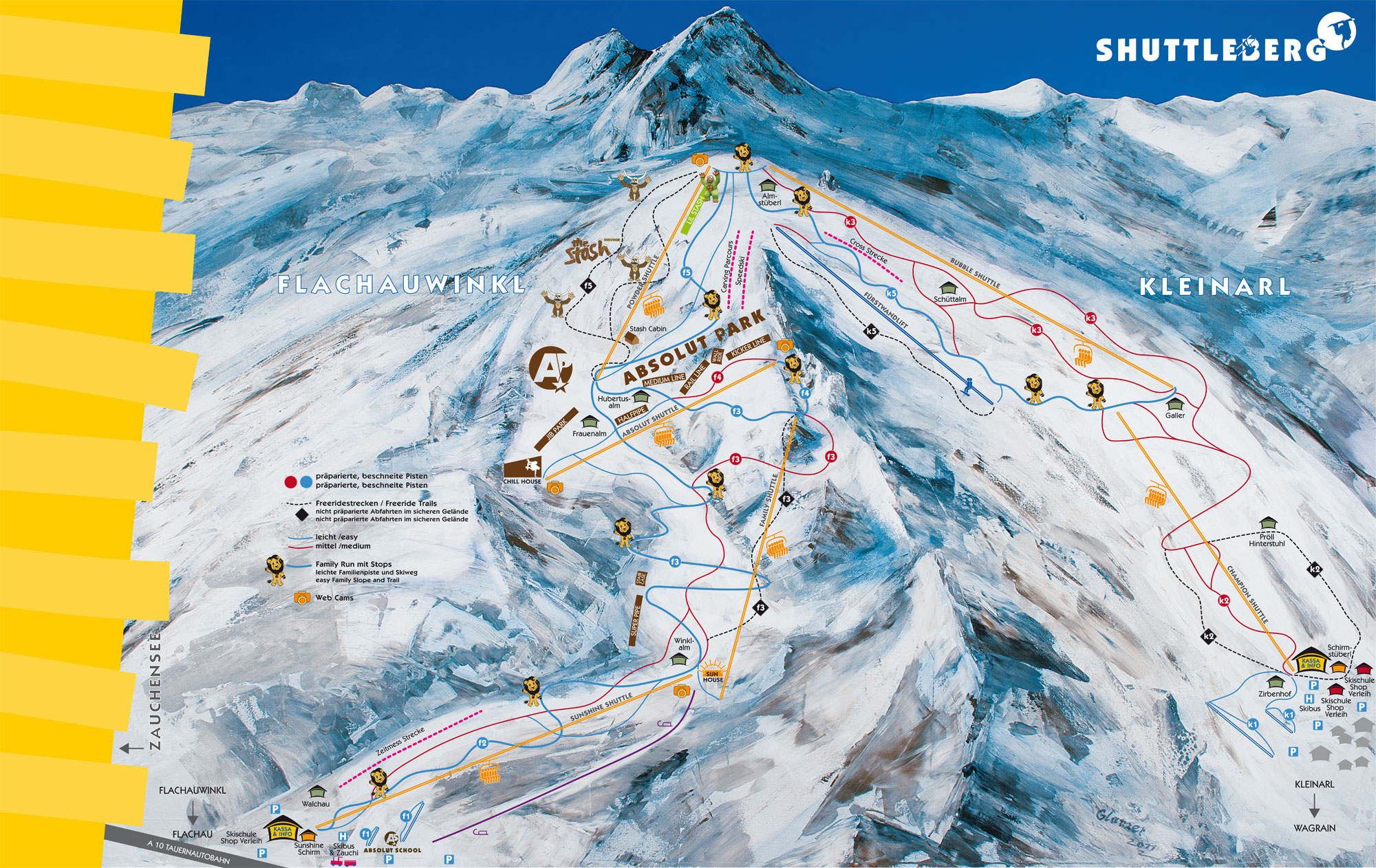 Zauchensee-Flachauwinkl-Kleinarl sípályarendszere a Ski Amadé része, ahol közel 73 kilométer sípálya meghódítására van lehetőségünk Zauchensee-től Kleinarl-ig (Zauchensee-Flachauwinkl 45 km, Flachauwinkl-Kleinarl 28 km). Flachauwinkl síterepe az A10-es autópálya mellett húzódik, ezért könnyen megközelíthető. Az út két oldalán induló felvonókkal csatlakozhatunk be innen a sípályarendszerbe. Zauchensee és Flachauwinkl közötti hegyoldalakon 1000-2.188 méter magasságban síelhetünk. Zauchensee a Salzburger Sportwelt legmagasabban fekvő síterepe. Itt található a 2.188 méter magas Gramskogel csúcstól induló, 4 kilométer hosszú Világkupa lesiklópálya, melyen a völgyig csúszhatunk 1.350 méter magasságba. Az út másik oldalán van a Flachauwinkl és Kleinarl hegyoldalain elnyúló síterep. A Schuttleberg hegyen, az 1.980 méter magas Mooskopf csúcsnál található Európa leghosszabb és legjobban kiépített funparkja, az Absoult Park, ahol 1,5 kilométer hosszú sípályán különböző akadályokon tehetik próbára magukat a snowboardosok és freeride síelők. Flachauwinkl felőli hegyoldal alsó részén 2 kilométer szánkópályán csúszhatunk a völgyig.