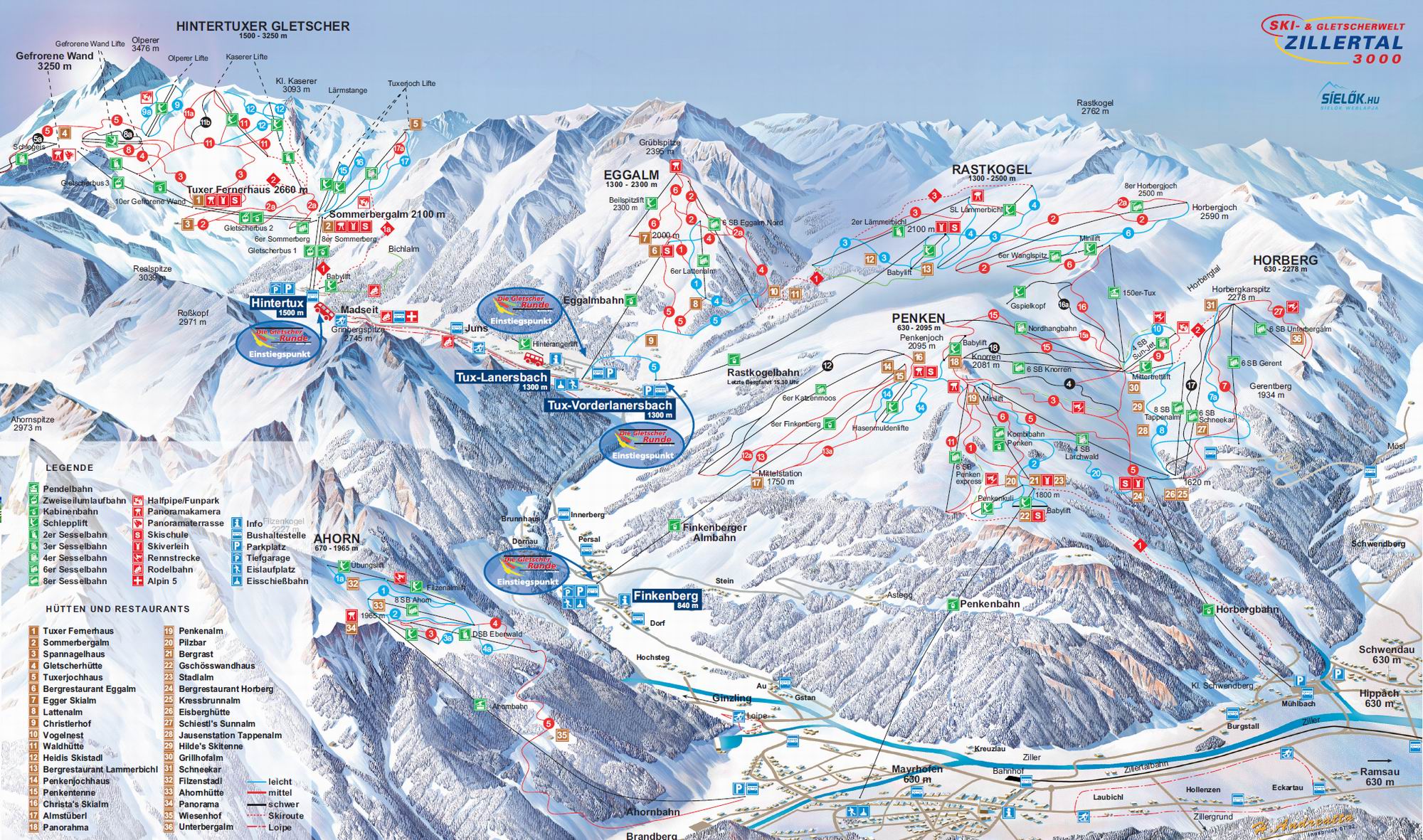 A Hintertux-gleccser lábánál terül el a Zillartal 3000 sírégió. A 1.300-2.500 méter magasságban fekvő, egybesíelhető sípályarendszerbe Mühlbach, Mayrhofen, Finkenberg és Tux településekről lehet becsatlakozni a völgyből induló kabinos felvonókkal. Zillertal 3000 területén 133 kilométer sípálya besielésére van lehetőségünk az Eggalm, a Penken, a Rastkogel és a Horberg hegyoladán. A négy hegy alkotta síterepen 41 kilométer kék, 63 kilométer piros és 29 kilométer fekete jelzésű sípálya várja a síelés rajongóit, ahol a kezdőtől a haladóig mindenki megtalálhatja a számára megfelelő lejtőt. Penken hegyoldalán található a Vans Penken Park, ahol a snowboardozás és freeride síelés rajongói változatos akadályokon csúszhatnak. A bátor síelők Ausztria legmeredekebb sípályáján, a 1,2 kilométer hossszú, 78%-os lejtésű Harakiri sípályán tehetik próbára magukat. Finkenberg mellett, a Bichlalmon 3 kilométer éjszakai szánkópályán is csúszhatunk. A Zillertal 3000 sírégió területén használható síbérlet a Zillartal Arena összes sípályájára is érvényes.