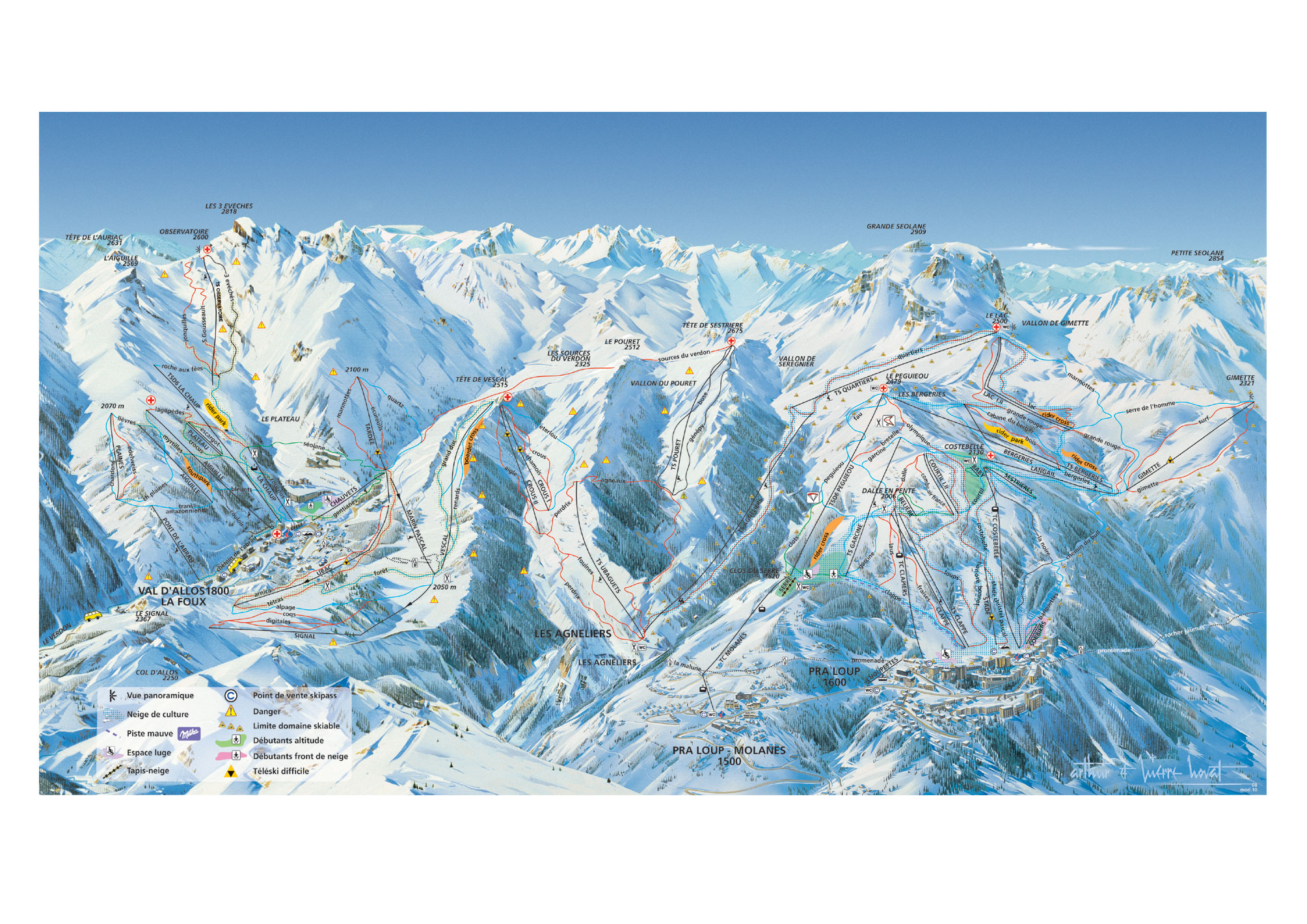 - Pra Loup és Val d'Allos síterülete közötti átjárás időjárás-függő, így a síbérlet csak akkor érvényes a másik területre, ha az Agneliers nevű felvonó és pályaszakasz járható.