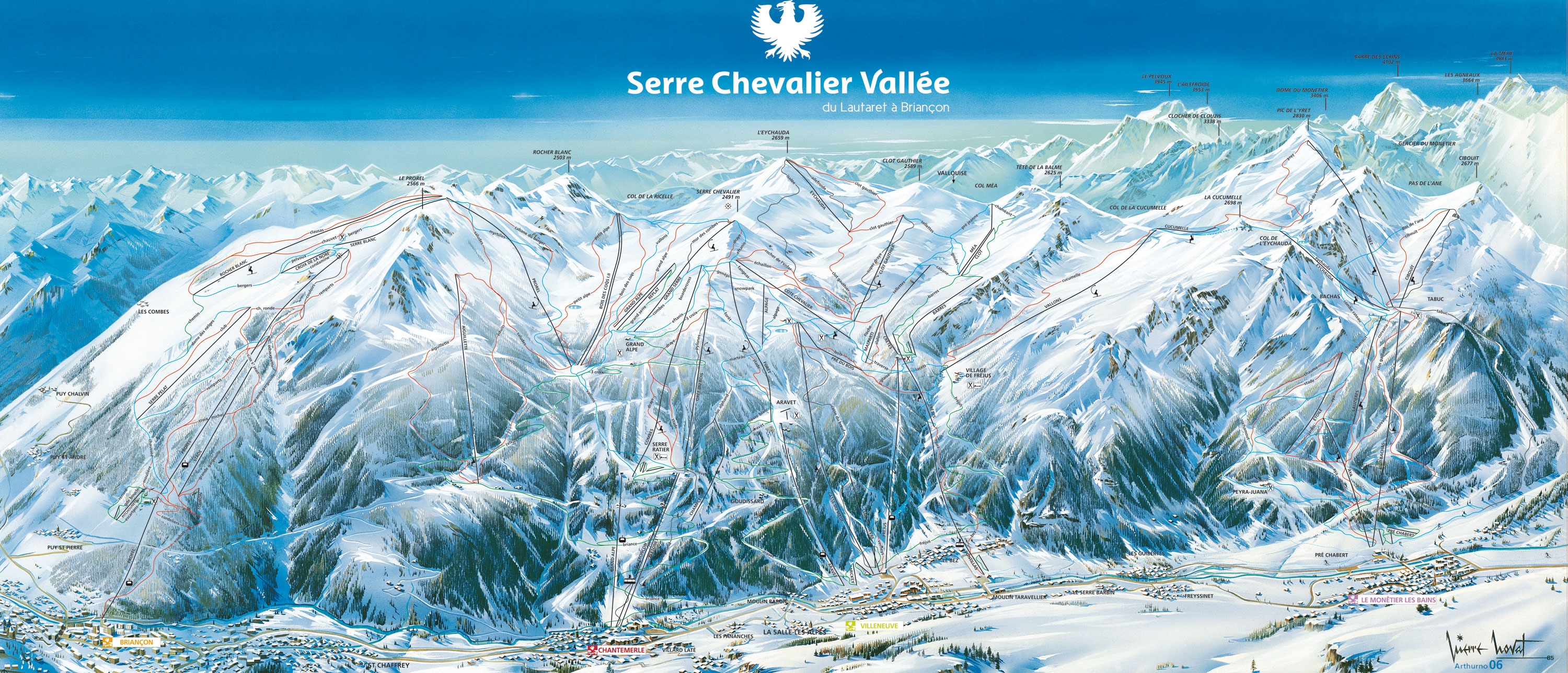 A magyar sízők körében talán a legismertebb síterep Serre Chevalier – Briancon, amelynek 250 km-es pályarendszere teljesen átjárható. Sokszínűsége miatt minden síelő megtalálhatja a saját tudásszintjének megfelelő pályát. Négy részre osztható a terület: Villeneuve, Chantemerle, Monetier és Briancon, ez utóbbi a síterep legnagyobb települése, amely egy hangulatos történelmi kisváros, 1300 méter magason. A síterep legmagasabb pontja (Pic de l'Yret, 2.800 m) Monetier területénél található, ahova az Yret nevű felvonóval lehet feljutni. Villeneuve és Chantemerle egy-egy hangulatos, kisebb üdülőfalu, a pályarendszernek ezen a két területén található két kiváló fekete pálya és sok jóminőségű piros pálya is. A sícentrum sok sportolási és szórakozási lehetőséget kínál (motoros szán, uszoda, siklóernyőzés).