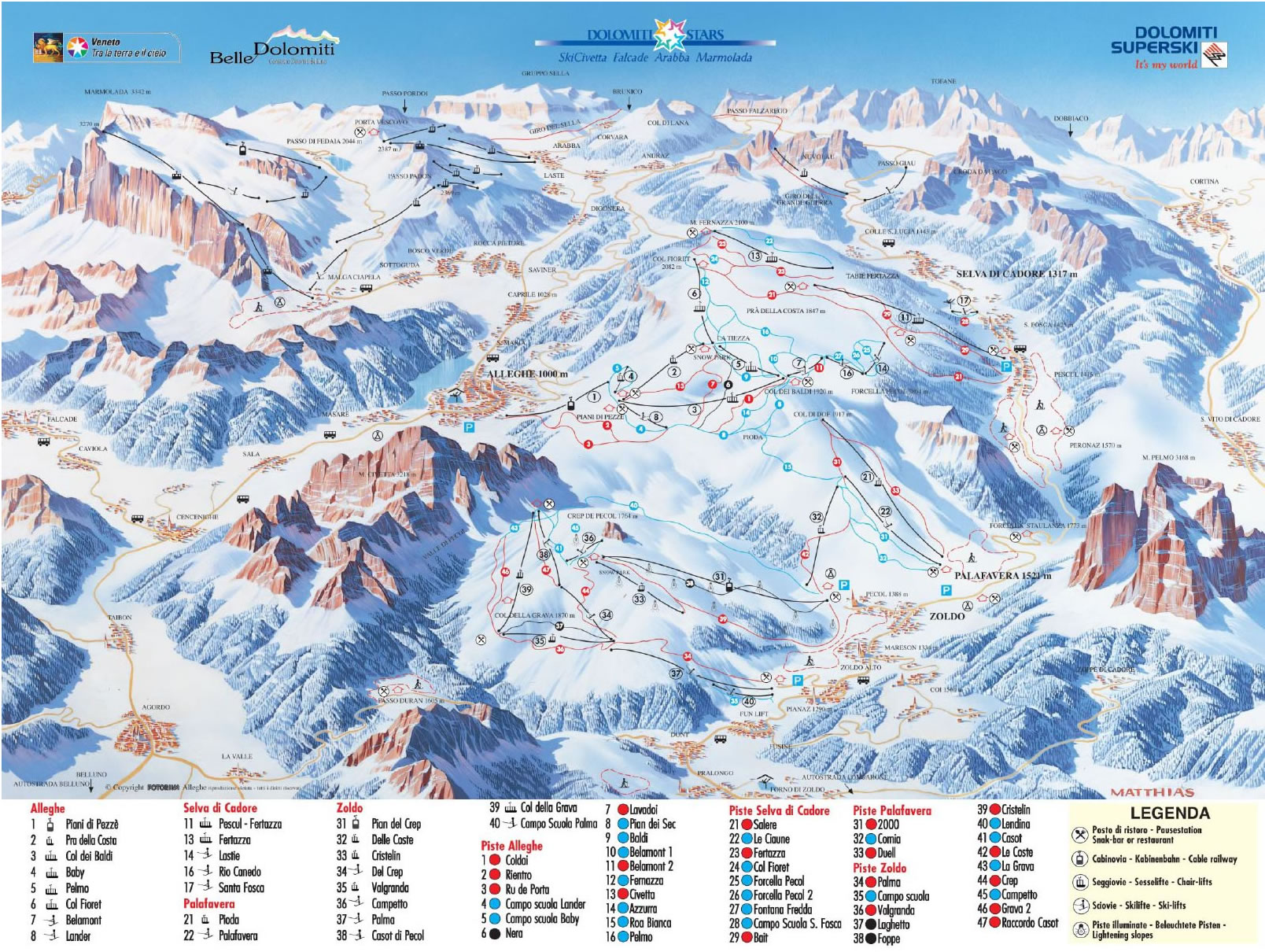 A Dolomitok impozáns csúcsai alatt megbúvó Civetta családias síterepe négy településről (Alleghe, Selva di Cadore, Palafavera, Zoldo) érhető el. Gyakorló pályák Alleghe kivételével minden településen várják a kezdőket, de szinte az egész pályarendszer is besíelhető kék pályákon. Esti síelésre Zoldo-Pecol-ban nyílik lehetőség, az extrémebbeket pedig 2 kisebb snowpark várja. Marmolada és Sella Ronda síterepekre síbuszjárat közlekedik.